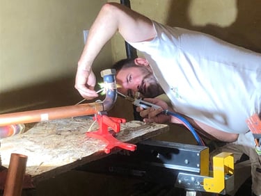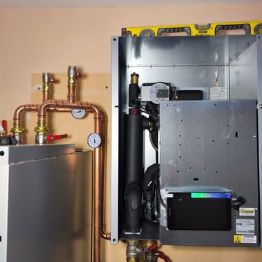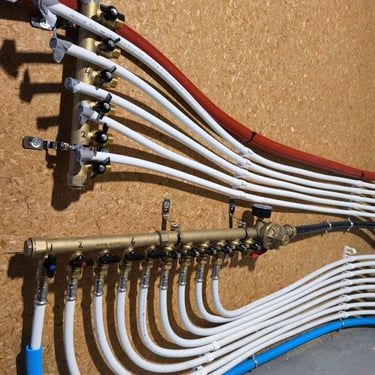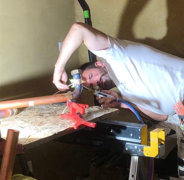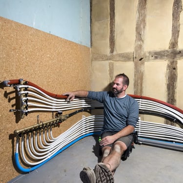 Travaux plomberie dans une maison entièrement rénovée: PVC évacuation, Chauffage hydrualique, Eau froide et chaude sanitaire, Récuperation eau de pluie.